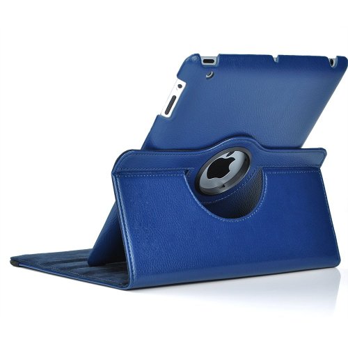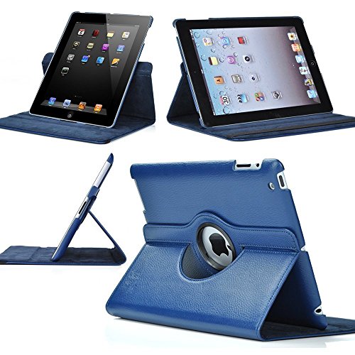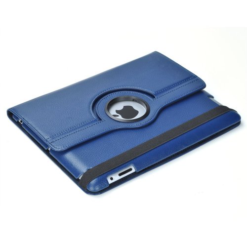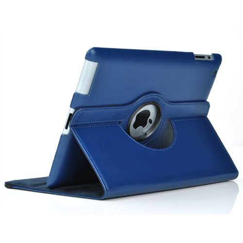 Zeox 360 Degree Rotating iPad 2 Case (Navy Blue): Folio Convertible Cover Multi-angle Vertical and Horizontal Stand with Smart On/Off for the Apple iPad 2/iPad 3/iPad 4