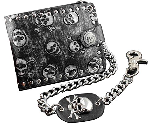 (vogueteen)/Accessories/Wallets, Money Key Organizers/DIRECT FROM USA/Fashion Rock Punk Metal Skull Money Black Men's Leather Wallet With A Chain