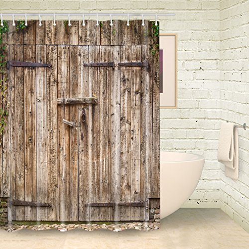 Vintage Wood Barn Door Shower Curtain by FOOG Rural Wooden Garage Door Waterproof Mildew Resistant Fabric White Gray Green (70"Wx78"L)