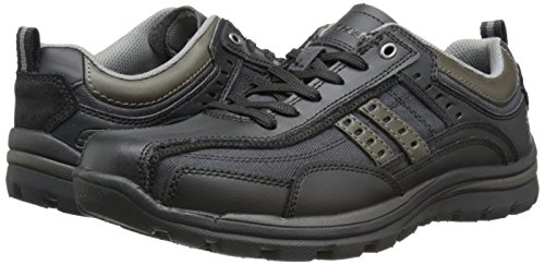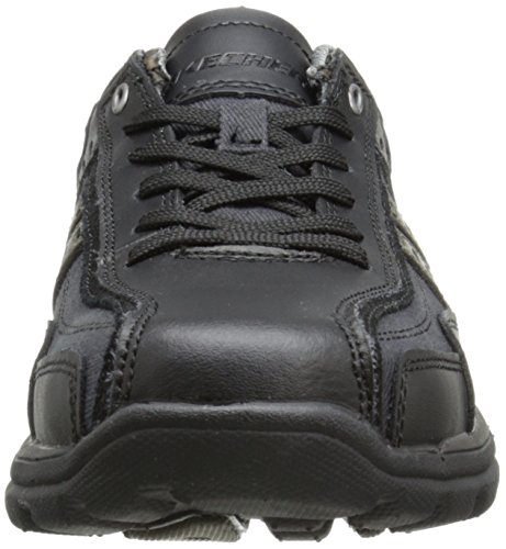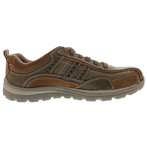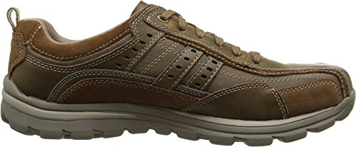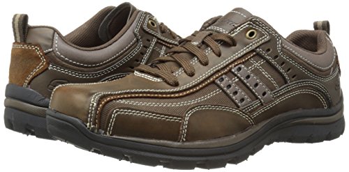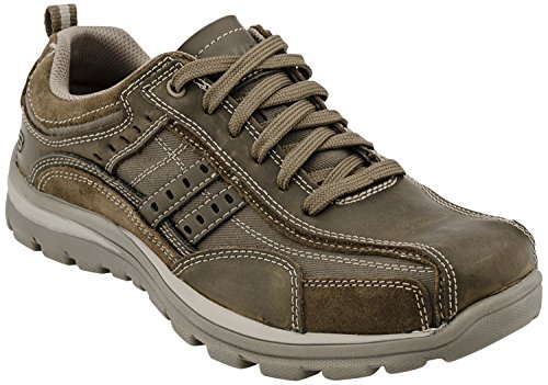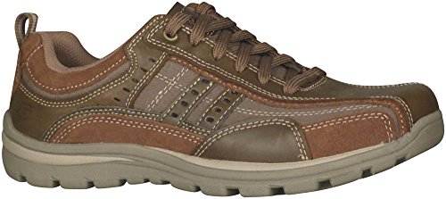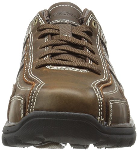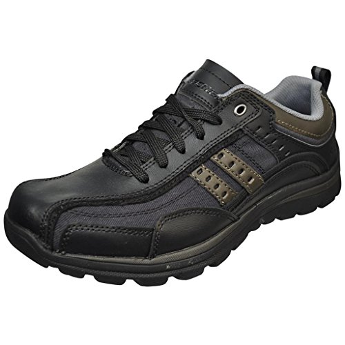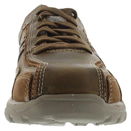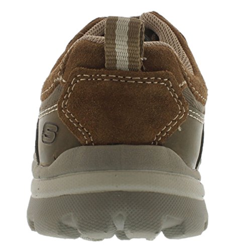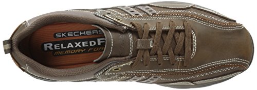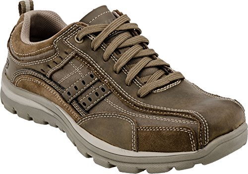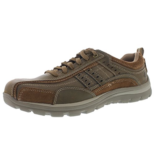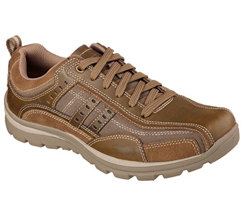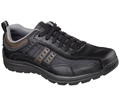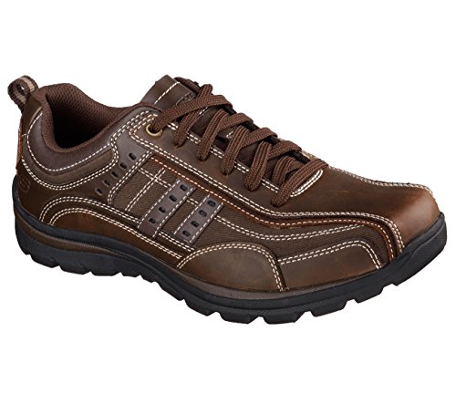 Studio : Skechers USA Footwear Mens Publisher : Skechers USA Footwear Mens Binding : Shoes Product Description Find a perfect blend of durability and utility with the men's Skechers Relaxed Fit Bonical shoe. Constructed with smooth leather, this shoe features distressed leather overlay panels with soft woven canvas fabric panels that offer long-lasting use. It showcases dual side stitched seam bicycle style toe design and side stripes with perforation accents for a distinct look. There is lace-up closure and pull on top tab at the heel panel for easy on/off. The Relaxed Fit® design with soft fabric shoe lining and Memory Foam insole impart incomparable comfort and cushioning support. For a finishing touch, it has shock absorbing lightweight midsole and sturdy rubber traction outsole. Stay comfortable all day long in the men's Skechers Relaxed Fit Bonical shoe. 0