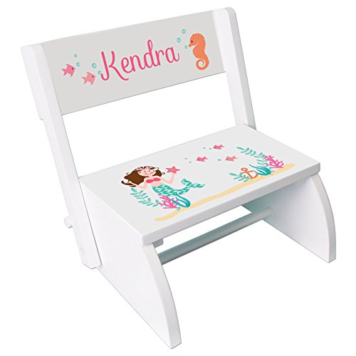Studio : MyBambino Publisher : MyBambino Binding : Baby Product Product Description Our MyBambino personalized brunette mermaid princess childrens and toddlers white folding stool can be used as both a stool and a seat. Easy to transport between bedrooms, kitchens, and bathrooms. 0