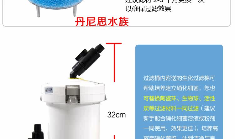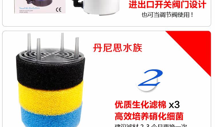 Since the pump can be connected, as a separate enclosed filters made hui role can connect a number, use as a completely separate physical filtration and biological filtration of the filtration system.