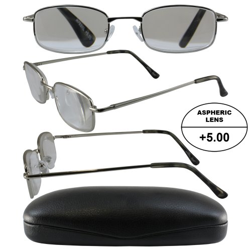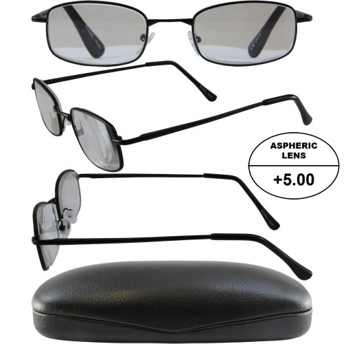 -. Brand : Readerz -. Feature : Diopter: 5.0X / Lens: Aspheric Clear / Frame Colors: Matte Black, Gold and Silver / Case Colors: Black and Brown / While these glasses cannot replace a prescription from an eye care professional, they are great quality if you know what magnification you need. -. Label : Readerz -. Manufacturer : Readerz -. MPN : 4BKREADER,4GDREADER,4SLREADER -. PackageQuantity : 3 -. PartNumber : 4BKREADER,4GDREADER,4SLREADER -. ProductGroup : Automotive Parts and Accessories -. ProductTypeName : POWERSPORTS_VEHICLE_PART -. Publisher : Readerz -. Studio : Readerz -. Title : 3 Pairs of Men's High-Powered Reading Glasses: Matte Black, Gold and Silver Frames and Black and Brown Cases +5.00 Magnification Aspheric Lenses