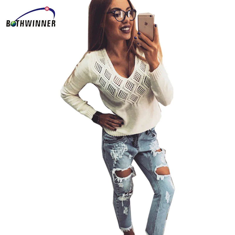 Long Sleeve Pullovers: Knitted Sweater Female Warm Tops