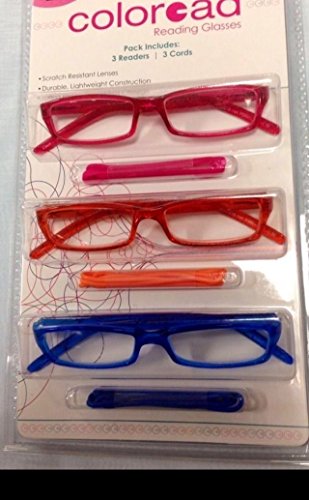 -. Title : 3 Pack Coloread +1.25 Foster Grant Reading Glasses w/ Cords (RED ORANGE BLUE) new