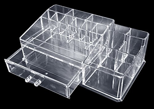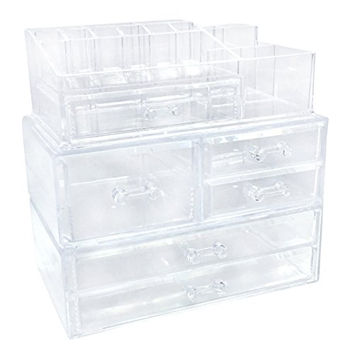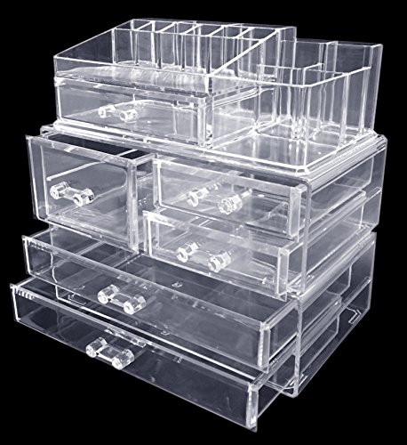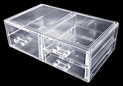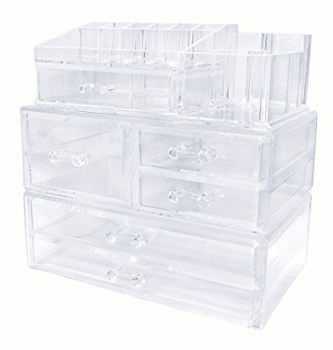 Sodynee Lagre Acrylic Makeup Cosmetic Organizer Storage Drawers Display Boxes Case, Three Pieces Set