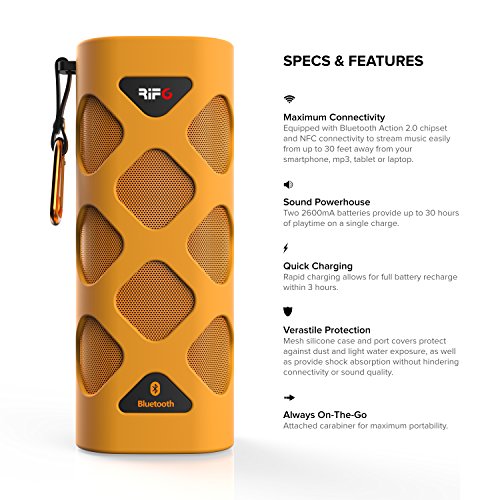 Title : RIF6 Bluetooth CSR 4.0 Speaker, Portable, Wireless, Rechargeable with 10W Power and 30 Hour Battery, Built-in Microphone and Carabiner (Orange)