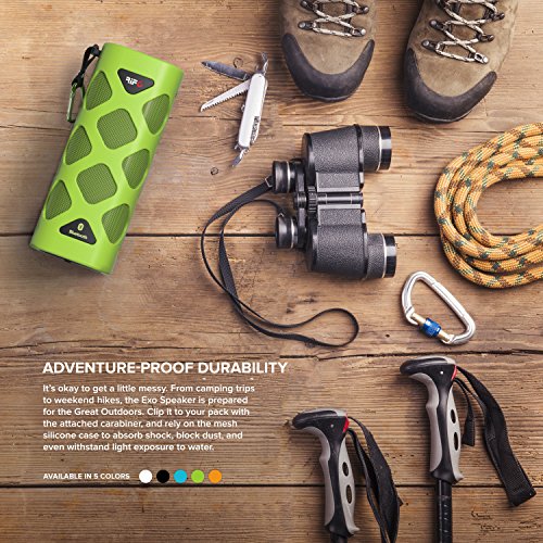 Feature : TRANSPORT YOUR TUNES - Equipped with NFC connectivity, our Bluetooth CSR 4.0 Speaker works up to 30 feet away from smartphones, tablets, or any other device you pair it with. / GREAT ON THE GO - Portable and rechargeable, with 30 hours of battery power. Awesomely balanced sound quality. / TAKE IT OUTSIDE - Comes in a durable, shock-absorbing, exoskeleton case that protects against light, water and dust. The perfect beach or picnic companion. / TRAVELS EASY - Measures 7 by 2.6 inches, and fits nicely in backpacks or tote bags. Includes attached carabiner for added security and convenience. / SOUND DESIGN - Textured, silicon mesh exterior looks super slick, and comes in 5 different colors to match your devices or gear.