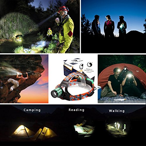 ADJUSTABLE&ZOOMABLE:Lamp swivels can be 90 degrees adjusted,and adjustable Strap is provided to make your head get the best comfortable condition.Zoomable headlight function can make you see a larger range brightness .
