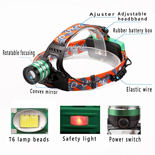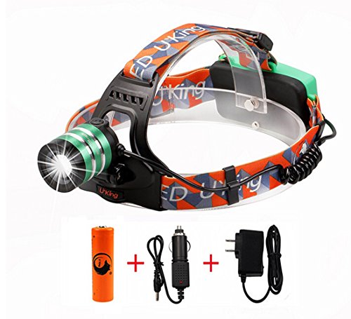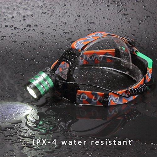 Waterproof Headlight, High Powered Lumen Bright Zoomable Headlamp CREE XMK-T6 LED with Rechargeable Batteries and Car Wall Charger for Outdoors Sports Hiking Camping Riding Fishing Hunting (Green)