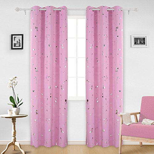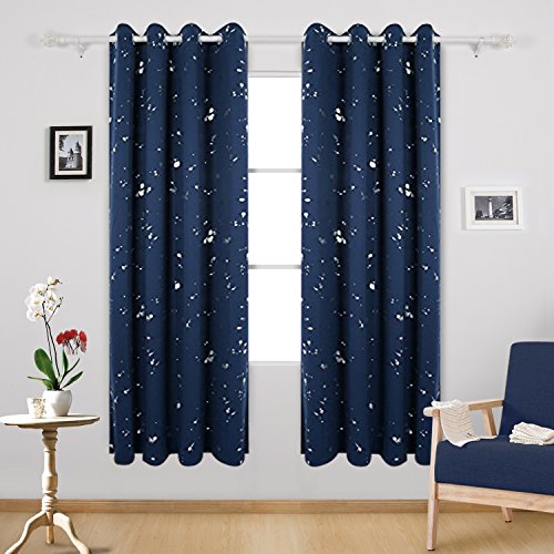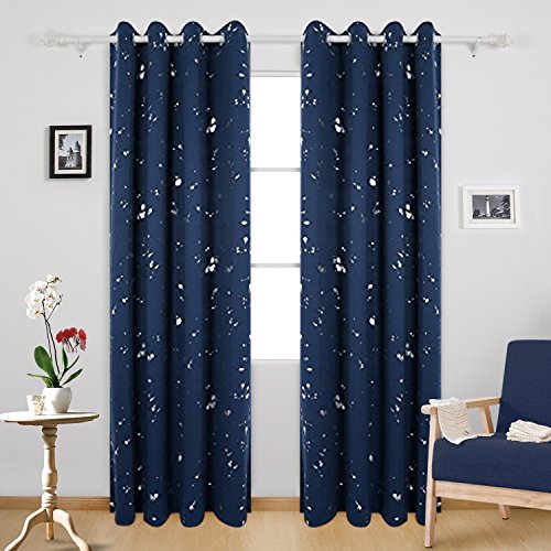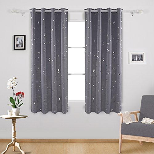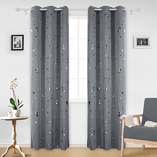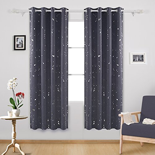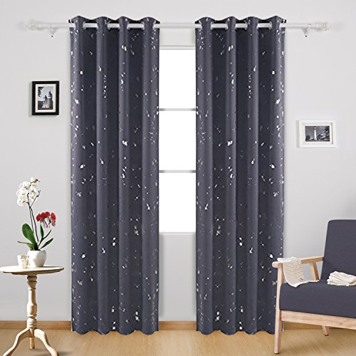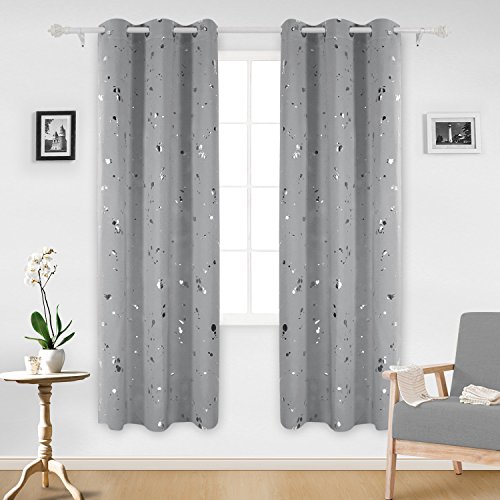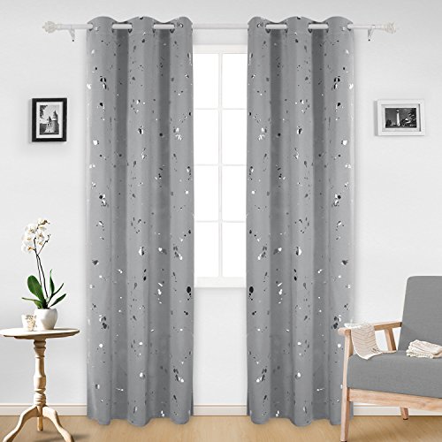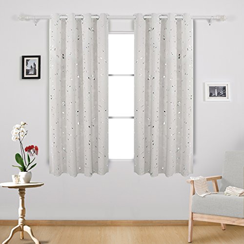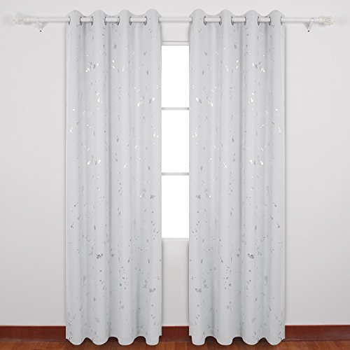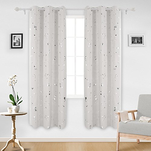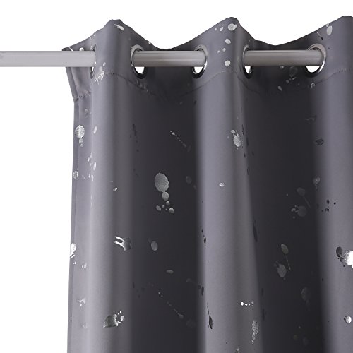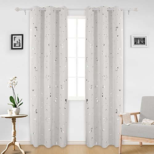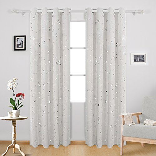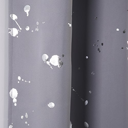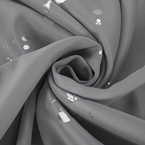 Deconovo SILVER Dots Foil Printed Blackout Curtains, brings a comfortable and lively atmosphere in your home. Neutral background color bring fabric an incredible beauty. These curatins are stylish and have a unique design. Made of 100% polyester, they are silky, soft, drapery and very pleasant to touch when compared to the other curtains. All seams are nice and straight, no loose threads. Floral patterns also have no visual defects. Overall, it makes the curtain hang nicely and gives an expensive look. They are durable, the fabric is not at all flimsy, and they are made to last for a long time! They are super easy to hang.