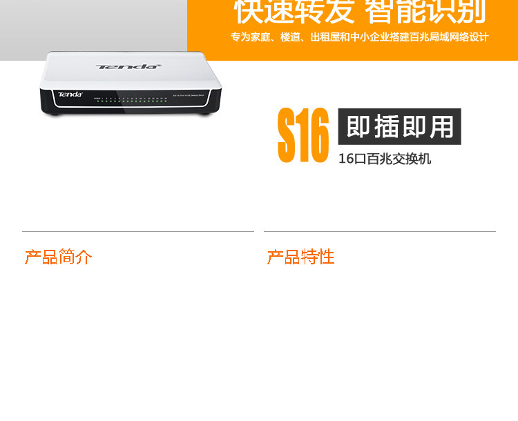端口16个10/100M自适应RJ45端口(Auto MDI/MDIX)