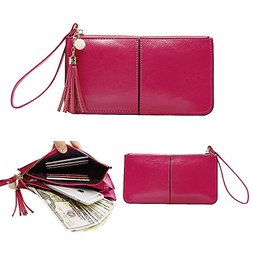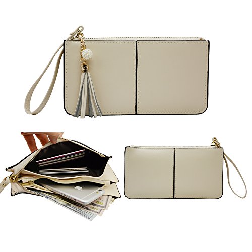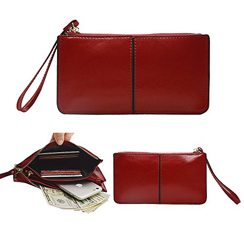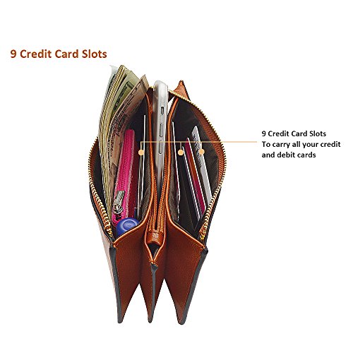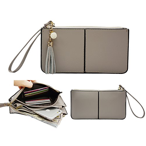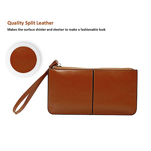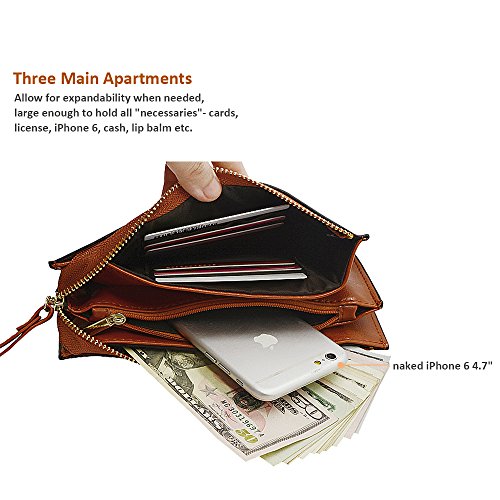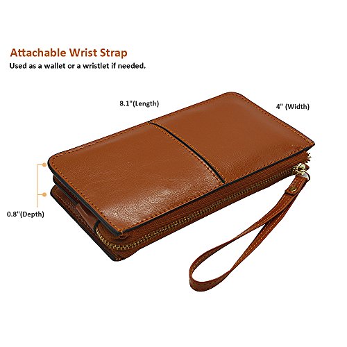 Belfen® [Soft leather] [Brown] Smartphone zipper wallet organizer with Credit Card Holder/Cash pocket/Wristlet- [Up to 6 x 3.1*0.5 Inch Cellphone]