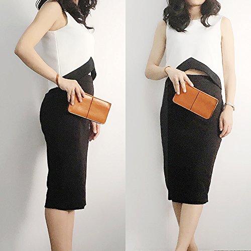 1. Material: Genuine split leather with gold-colored hardware accents & a leather wristlet to free your hand, Attention: Split leather is leather created from the fibrous part of the hide left once the top-grain, Split leather then has an artificial layer applied to the surface.