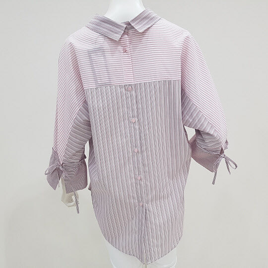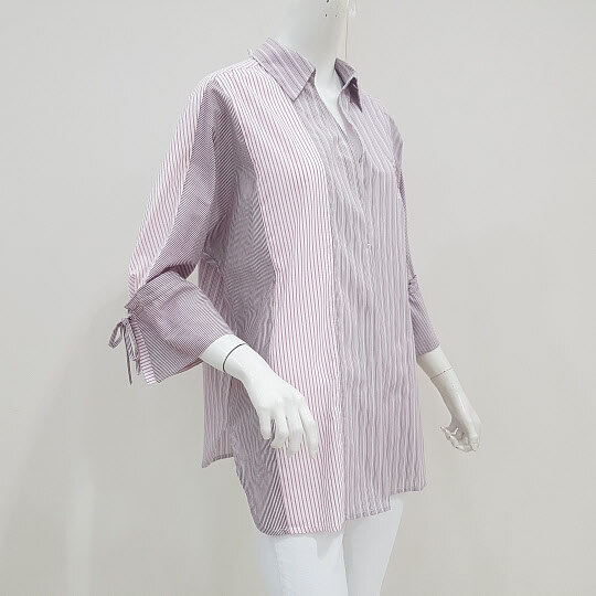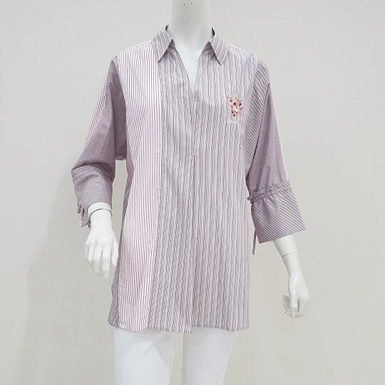 The Izzat, 핀스트라이프 패턴으로 캐주얼한 스타일 감각을 연출하는 롱블라우스입니다