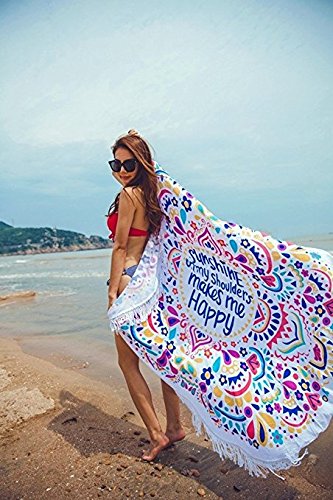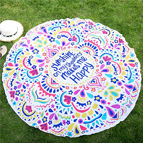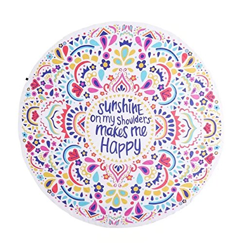 Studio : Vacation Beach Towel Round Scarf Publisher : Vacation Beach Towel Round Scarf Product Description Vacation Beach Towel Round Scarf is a gorgeous mandala cloth of excellent quality with absolutely no flaws.diameter is 145cm / 57 inch, Weight: 110g / 3.9 ounce /0.3 pounds It will be very good for using in Hot Summer. They are lightweight and can be rolled up into your bag to take to the beach! It is really soft and the fabric is also thin enough so you won't get hot if used to cover up on the beach and can also enjoy the feeling of the sand beneath you if you lay on it. Other than that, it's very comfortable to sit on and doesn't leave any dye stains either. The colors are very bright, you will be the focus of the beach. Our Beach Towel Scarf is very fashionable, it is well made but thin enough to be carried everywhere. The size is also great, large enough to fit two people on for sure. Folds up small, so you can pack away into a travel bag and really light to carry around. Colors are bright and vivid. If your living room lacks color, You could use this for just about anything as a throw on the couch. Ideal for the beach towel, yoga mat, wall hanging, tablecloth, shawl, couch cover, window curtain, home decor wall art or etc. 0