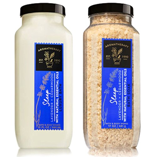 -. Binding : Misc. -. Brand : Bath & Body Works -. EAN : 0725512333049 -. Feature : Includes 1 Lavender & Cedarwood Bath Soak (17oz) and Luxury Bath(15 oz) / Lavender Essential Oil inspires tranquility. Cedarwood Essential Oil helps calm the mind. / Relax after a long day and soak in the healing properties of this therapeutic bath with purifying sea salt and a blend of essential oils. -. IsAdultProduct : 0 -. Label : Bath & Body Works -. Manufacturer : Bath & Body Works -. MPN : NA -. PartNumber : NA -. ProductGroup : Beauty -. ProductTypeName : BEAUTY -. Publisher : Bath & Body Works -. Size : 17 Ounces -. Studio : Bath & Body Works -. Title : Luxury Stress Stress Bath Bundle - Lavender & Cedarwood Bath Soak (17oz) and Luxury Bath(15 oz) -. UPC : 725512333049