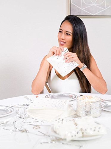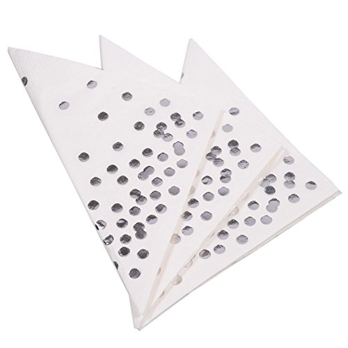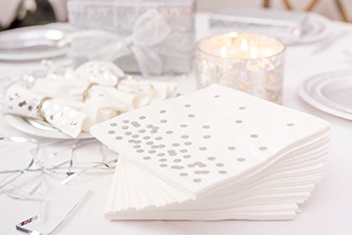 BLUEWHALE 3 ply Decorative white napkins stamped with shiny silver foil dots; pack of 50 for yo...