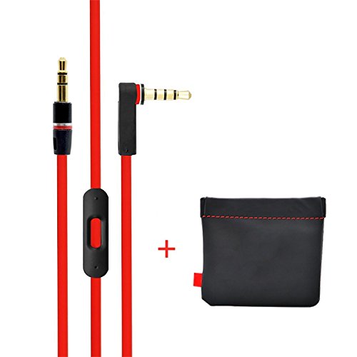 Replacement Cable/Wire for Beats By Dre Headphones Solo, Studio, Mixr, Wireless w/ Storage Leather Pouch (Red & Black)