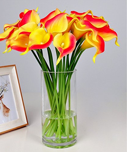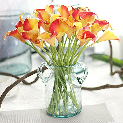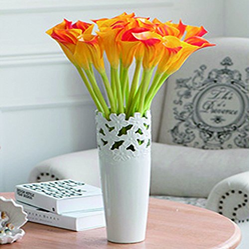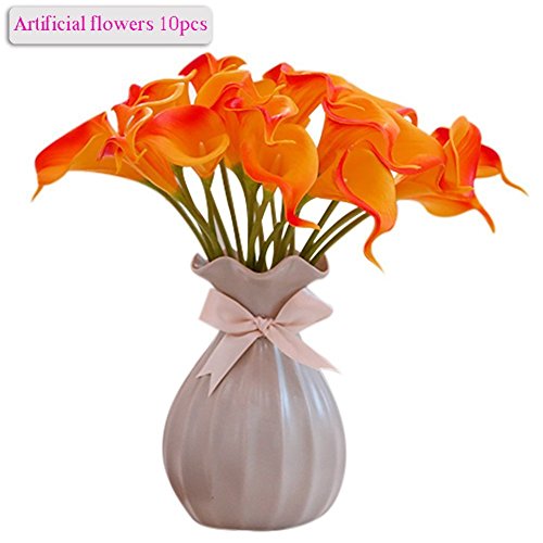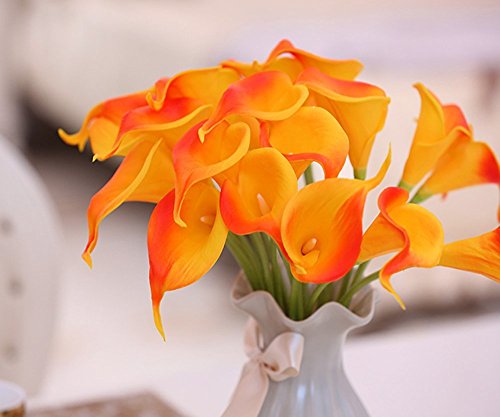 Artificial Flowers, Meiwo 10pcs Artificial Calla Lily Flowers Full Bloom Artificial Latex Real Touch Flowers for Home Decor, Parties, Offices, Restaurants(Orange)