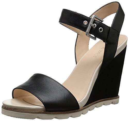 Platform wedge sandal featuring padded platform footbed and lugged sole