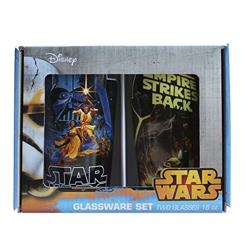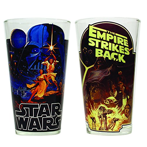 Studio : Star Wars Publisher : Star Wars Binding : Kitchen Product Description The Silver Buffalo SW031P2 Star Wars Movie Posters Pint Glass Set lets you have a drink with the icons of Star Wars. This set comes with 2 pint glasses; each pint glass holds 16-ounces of liquid. Do not use in microwave or dishwasher; hand wash only. Do not use cleaners containing bleach or chlorine. Perfect for display and practical everyday use. Express your love for Star Wars with this awesome pint glass set! Silver Buffalo is a trendsetting housewares and home decor company based in the heart of New York City. We work in collaboration with your favorite licenses and brands to develop creative, unique and innovative products; while maintaining a commitment to detail and quality. We pride ourselves on manufacturing and distributing product that resonates with the child or fan(atic) in all of us. 0