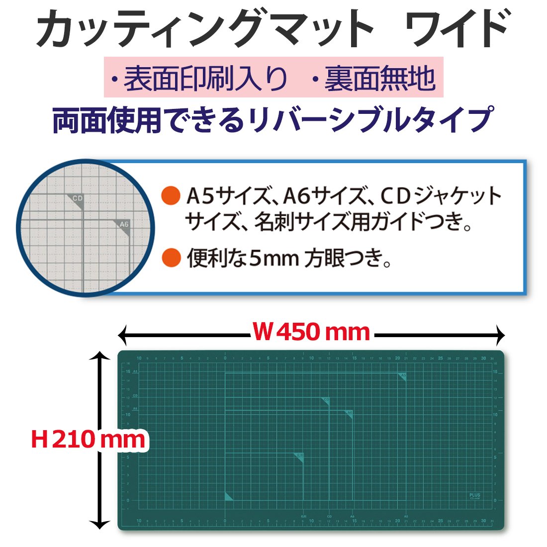 長時間の作業でも快適な、彩度をおさえたダークトーンカラーを採用したカッティングマット。 メーカー型番 : CS-A4W GR/48-577 サイズ : 縦210×横450×厚さ2mm 重量 : 177g カラー : グリーン