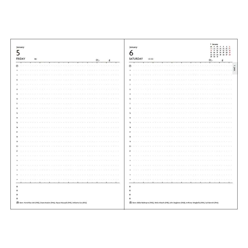 Daily page has a simple 5 mm wide dot ruling specification, but has a convenient guide point for drawing vertical lines vertically.