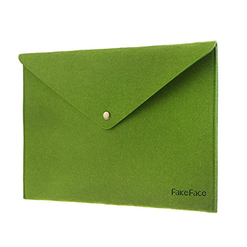 FakeFace Felt A4 Envelope File Button Storage Bag Case Document Bills Paper Container Kit Pouch Briefcases for Office Home School Stationery Two Color Set (Rose Red+Green)