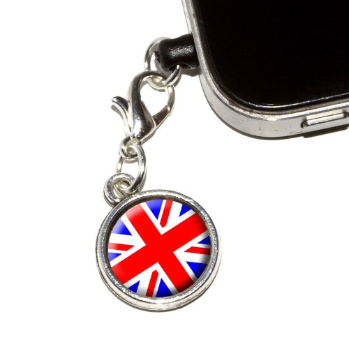 Graphics and More Britain British Flag - Union Jack Anti-Dust Plug Universal Fit 3.5mm Earphone Headset Jack Charm for Mobile Phones - 1 Pack - Non-Retail Packaging - Antiqued Silver
