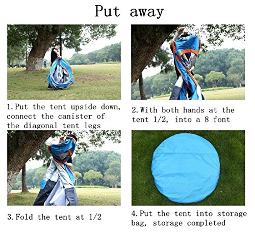 Package: 1 x Pop Up Tent 1 x Compressed bag with carry straps 8 x Pegs 4 x Wind Rope 1 x Instruction Paper
