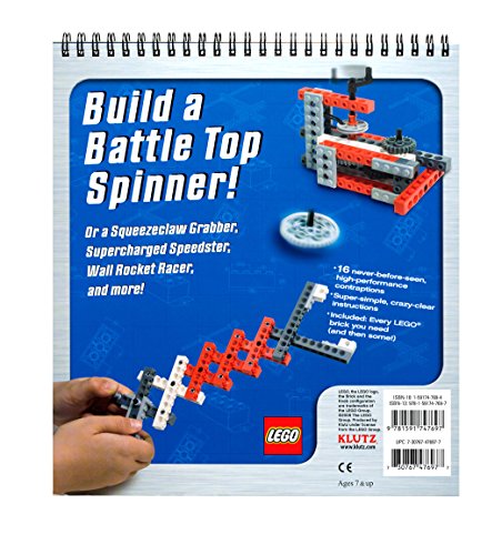 -. Binding : Hardcover-spiral -. Brand : Klutz -. Department : unisex-child -. EAN : 9781591747697 -. Edition : Nov Spi Ha -. Feature : Includes every brick, gear & axle you need to create 16 unique projects / Comes with 105 L.E.G.O bricks / Includes a 50 page instructional book with Klutz certified crystal-clear instructions / 1.5+ million copies sold / Recommended for children ages 7+ -. IsAdultProduct : 0 -. ISBN : 1591747694 -. Label : Klutz Press -. Manufacturer : Klutz Press -. Model : 9781591747697 -. MPN : 9781591747697 -. NumberOfItems : 1 -. NumberOfPages : 50 -. PackageQuantity : 1 -. PartNumber : 9781591747697 -. ProductGroup : Toy -. ProductTypeName : TOYS_AND_GAMES -. PublicationDate : 2008-09-01 -. Publisher : Klutz Press -. SKU : 9781591747697 -. Studio : Klutz Press -. Title : Klutz L.E.G.O Crazy Action Contraptions Craft Kit -. UPC : 659213184696 -. Warranty : Please contact the seller directly for warranty information for this product. You may also be able to find warranty information on the manufacturer's website.