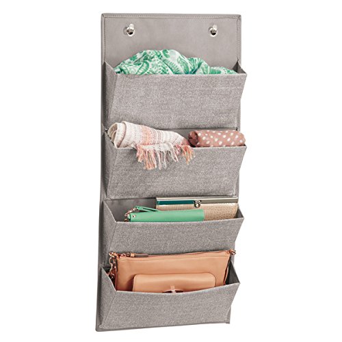 mDesign Wall Mount/Over Door Fabric Closet Storage Organizer for Clutch Purses, Handbags, Scarves - 4 Pockets, Linen