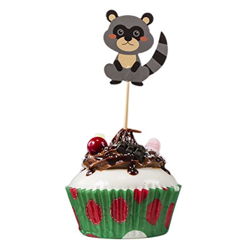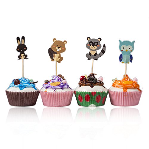 Skylove Set of 48 Pieces owl Cute Animals Giraffe Elephant Lion Zebra Dinosaurs Dessert Muffin Cupcake Toppers for Picnic Wedding Baby Shower Birthday Party Server