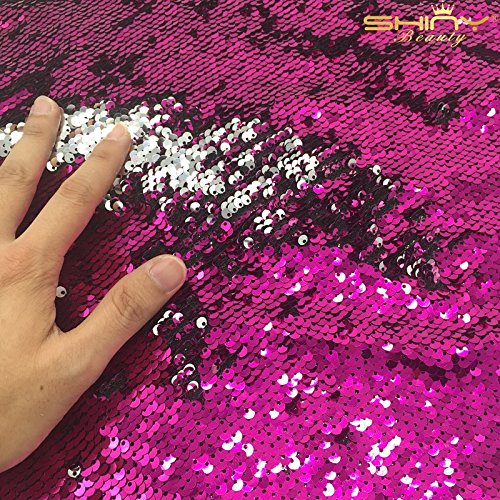 1 Yard Mermaid Flip Up Fuchsia Sequin Reversible Sparkly Stretch Fabric Sold By The Yard For Dress/Decor/Clothing (#31 Fuchsia)
