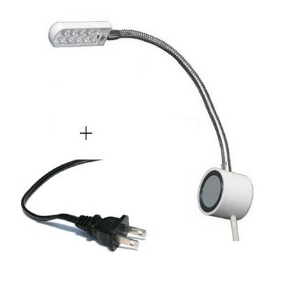 Homeware Sewing Machine Working gooseneck Lamp , with Magnetic Mounting Base. Can be placed at the best lighting position with magnet , 7" Flexible / Bendable gooseneck 55 Inch long connection line. Comes with Power cord, Super bright, 10 PIECES LED lights, 110V, Energy saving, save 90% energy On/Off Switch.Feature