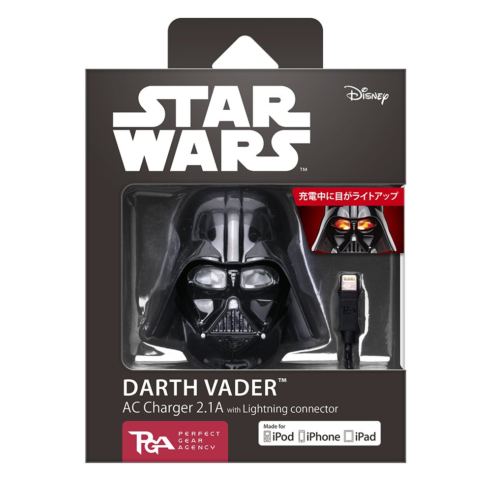 "PG - DAC 352 DV" is an AC charger with output current of 2.1 A that can charge iPad, iPhone, iPod with Lightning connector from STARWARS character design outlet.