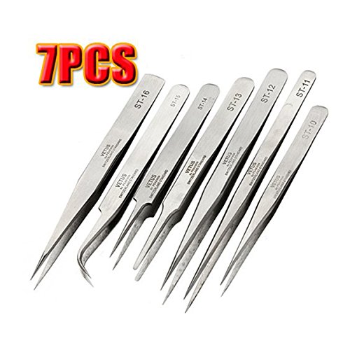 OULII Stainless Steel Antistatic Tweezers Set BGA Precision Tweezers Pack of 7pcs