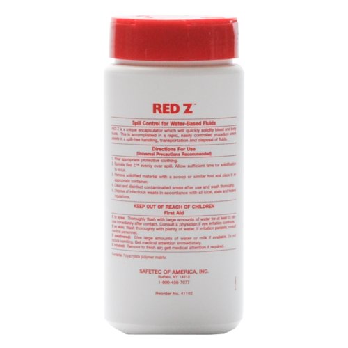 -. Binding : Health and Beauty -. Brand : RED Z -. Label : SAFETEC OF AMERICA INC -. Manufacturer : SAFETEC OF AMERICA INC -. MPN : 41102 -. PackageQuantity : 1 -. PartNumber : 41102 -. ProductGroup : Health and Beauty -. ProductTypeName : HEALTH_PERSONAL_CARE -. Publisher : SAFETEC OF AMERICA INC -. Studio : SAFETEC OF AMERICA INC -. Title : Red Z Bio Fluids Absorbent Powder 11 oz bottle