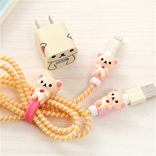 Tospania DIY Protectors for iPhone4/5/6/7 Lightning Cable and USB Charger (Beige Bear)