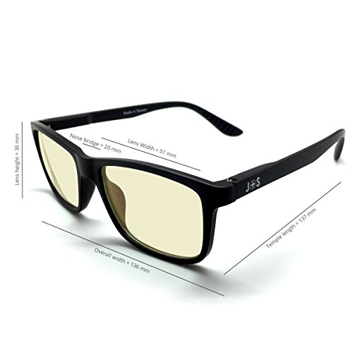 J+S Vision Blue Light Shield Computer Reading/Gaming Glasses - 0.0 Magnification - Anti blue light 100% UV protection Low color distortion, classic matte black frame - Essential Gaming Gear
