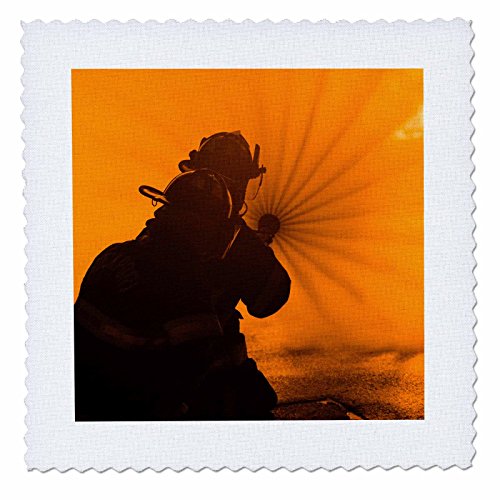 3dRose Massachusetts, Rockport, Fourth of July Bonfire, Firemen Quilt Square, 8 x 8"