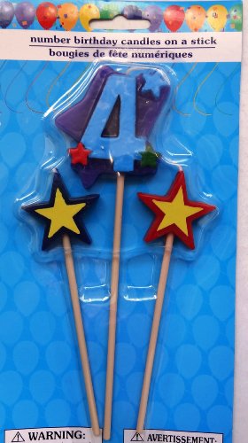- Three piece set (includes two star candles and one number 4)