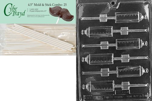 Cybrtrayd 45St25-B018 Baby Bottle Lolly Chocolate Candy Mold with 25-Pack 4.5-Inch Lollipop Sticks