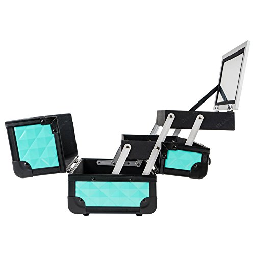 SHANY Mini Makeup Train Case Cosmetics Organizer with Mirror, Turquoise, 2.75 Pound