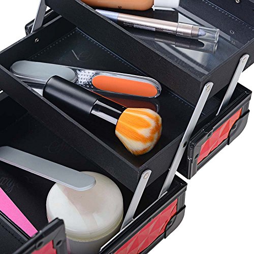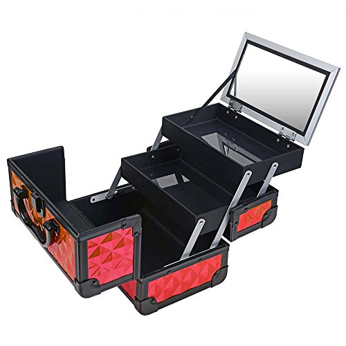 SHANY Mini Makeup Train Case with Mirror, Ruby Red