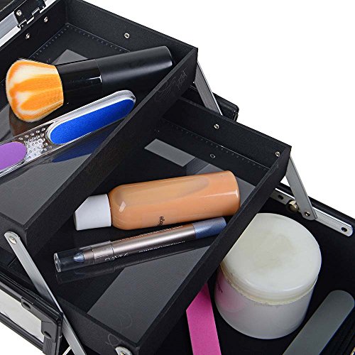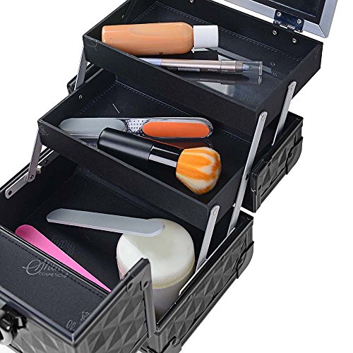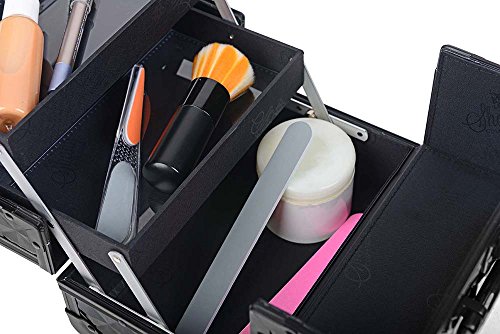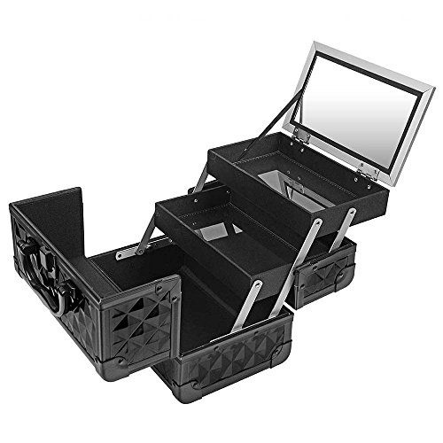 SHANY Mini Makeup Train Case with Mirror in Black and Silver Frame