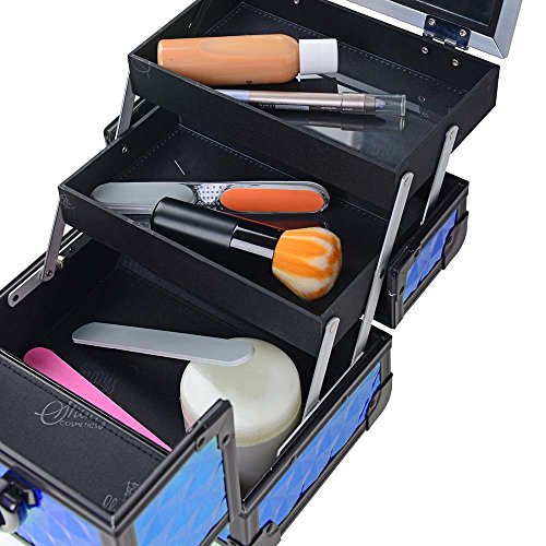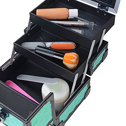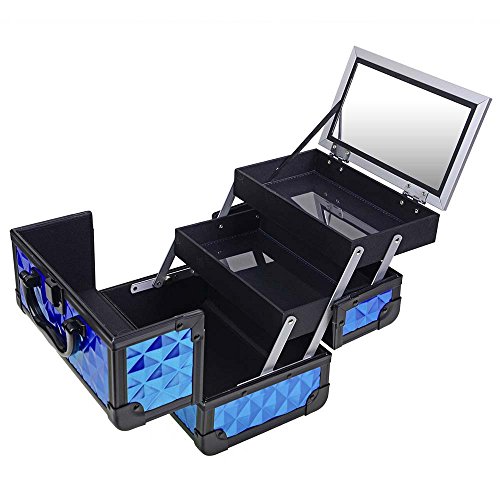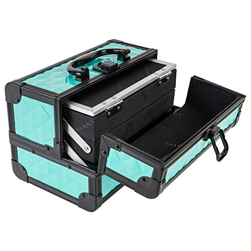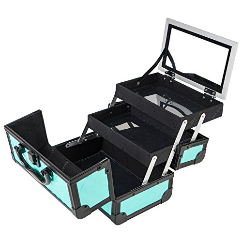 SHANY Mini Makeup Train Case With Mirror - Peacock Blue