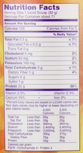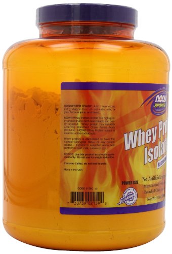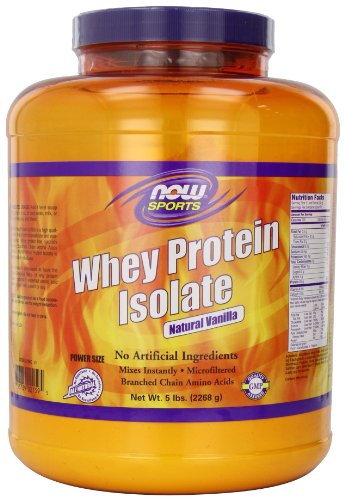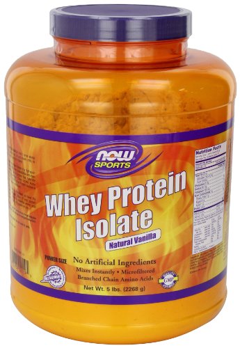 ReleaseDate : 2008-02-08 Studio : Now Foods Publisher : Now Foods Binding : Health and Beauty Product Description Whey Protein Isolate Vanilla by Now Foods 5 lbs Powder Our 100 Pure Whey Isolate didnt just raise the bar on what a protein should be it shattered it Each serving packs an impressive 50 grams of easily digested cross-flow microfiltered whey isolates and an incredible 14.5 grams of mass building BCAAs. All this with only 1 gram of fat and 7 carbs per serving. Dont settle for inferior proteins that hide behind fancy labels and flashy full-page ads. If you demand excellence from your protein youre exactly who we designed our 100 Whey Isolate for. Serving Size 2 Level Scoops (62 g) Servings Per Container 36 Amount Per Serving Daily Value Calories 230 Calories from Fat 5 Total Fat 0.6 g 1 Saturated Fat 0.4 g 2 Cholesterol 9 mg 3 Sodium 90 mg 4 Potassium 350 mg 10 Total Carbohydrate 7 g 2 Sugars 5 g Protein 50 g 100 Calcium 255 mg 25 Typical Amino Acid Profile Essential Amino Acids mg Per 62 g Servings L-Isoleucine 3182 L-Leucine 5818 L-Lysine 5512 L-Methionine 960 L-Phenylalanine 1466 L-Th 0