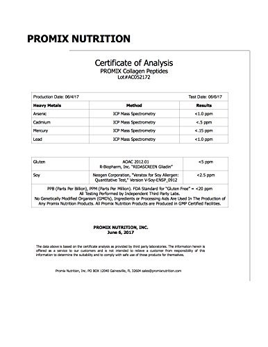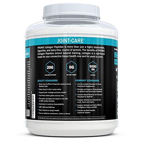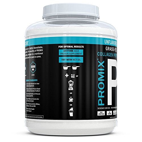 PROMIX Nutrition Collagen Peptide Grass-Fed Protein Powder for athletes, coaches, and those invested in their health. ALL AROUND STRENGTH: Improve your body's performance by strengthening your connective tissue. By encouraging the growth of ligaments, tendons, and cartilage, you can gain support for your main muscles, allowing you to go harder and longer during your workouts. Keep your body strong all around with collagen, the body Is most prevalent protein. JOINT HEALTH: Add 20 grams of pure collagen peptide protein powder to a drink of water, cup of juice, smoothie, or bowl of oatmeal with just one serving. Get the protein you need to help promote healthy joints. Collagen is also great for bone, skin, hair, and nail health. GUT HEALTH: A dairy free source of protein, this Collagen powder has a unique peptide profile rich in Glycine, offering digestive benefits. Glycine plays a vital role in the digestive system: from aiding the liver in fat digestion to detoxification. Glycine also helps to improve nutrient absorption and utilization for better health and immunity OPTIMUM BIOAVAILABILITY: Our collagen peptide formula has been hydrolyzed to maximize bioavailability for complete and super quick absorption: a great supplement for men and women, young and old HIGHEST QUALITY STANDARDS: PROMIX has higher testing standards than any other collagen protein. Our formula starts with protein derived from 100% grass-fed cows milk and contains no fillers, sweeteners, colors, corn, soy, or gluten. PROMIX is proudly third-party tested for corn, soy, gluten, GMOs, and bioavailable protein co-factors rBST and rGBH. - Collagen Peptide Protein Powder - 100% Grass-Fed Protein - 2.5lbs / 53 Servings - 20g Protein, 0g Carbs - Corn, Soy, and Gluten FreeFeature